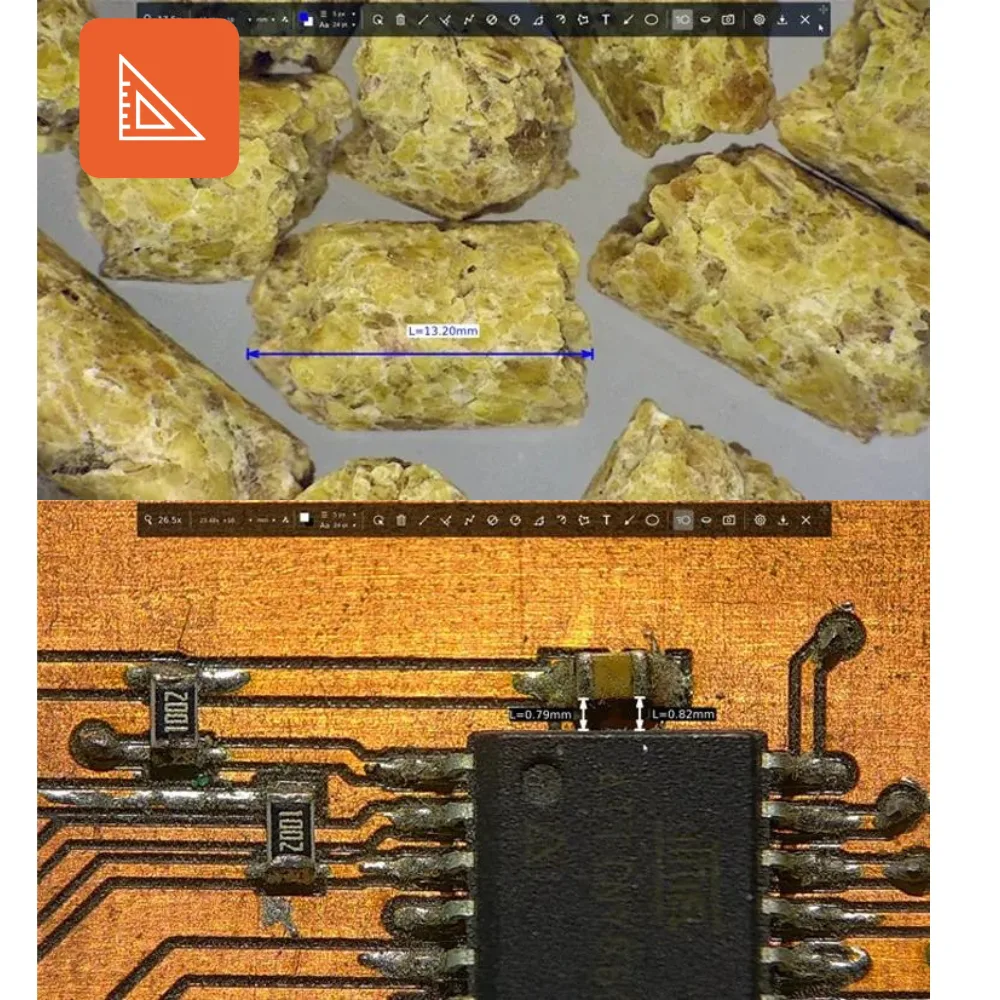 Une fois calibrée, vous pouvez effectuer des mesures précises avec le logiciel de mesure. Choisissez entre point à point, polyligne, diamètre, angle, surface et plus encore.