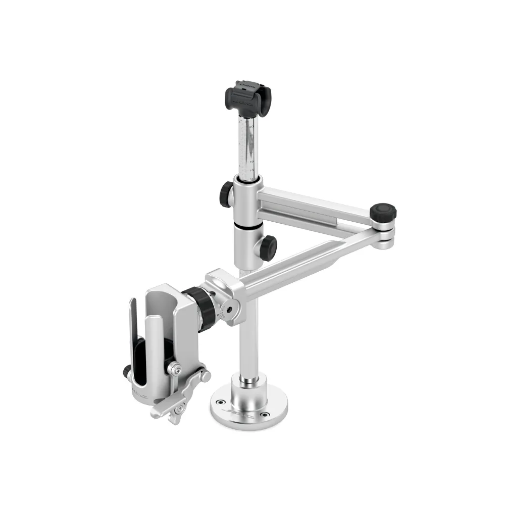 Ce bras de rework réglable est livré sans plaque de base et s’installe facilement sur l’établi. L’opérateur profite ainsi pleinement de la surface de l’établi.