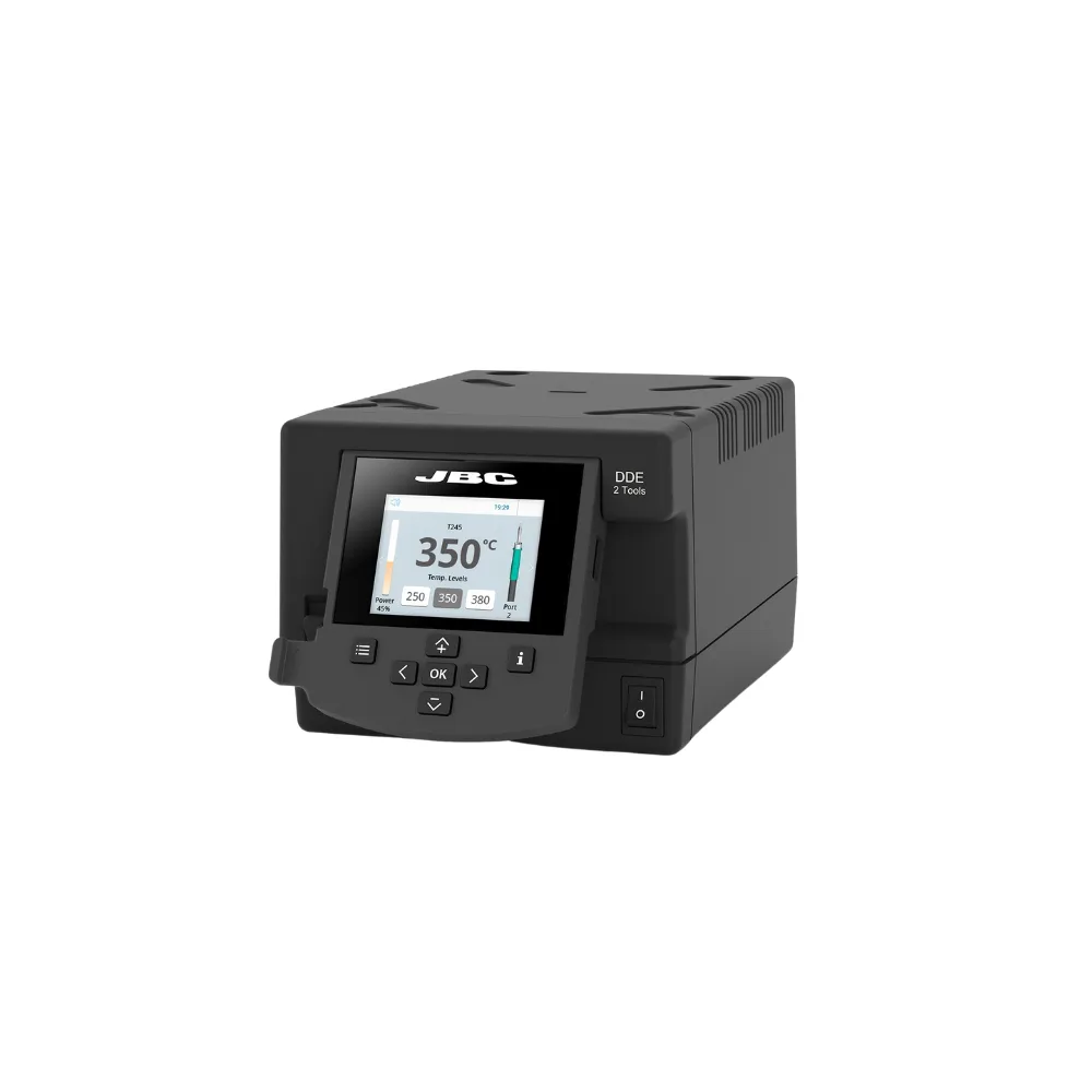- Amélioration de la qualité de soudure grâce à la gestion intelligente de la température de JBC et, de plus, aux modes veille et hibernation qui prolongent la durée de vie des pannes jusqu’à 5 fois plus longtemps.