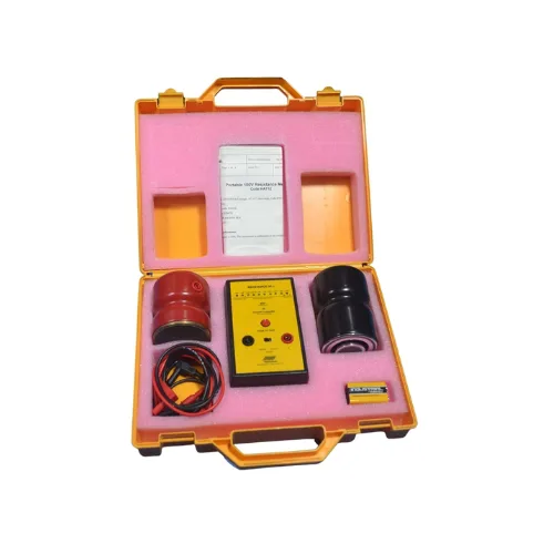 - Le kit de test inclut deux sondes cylindriques, deux cordons et pince crocodile, une batterie 9v, un certificat de calibration et une valise de transport